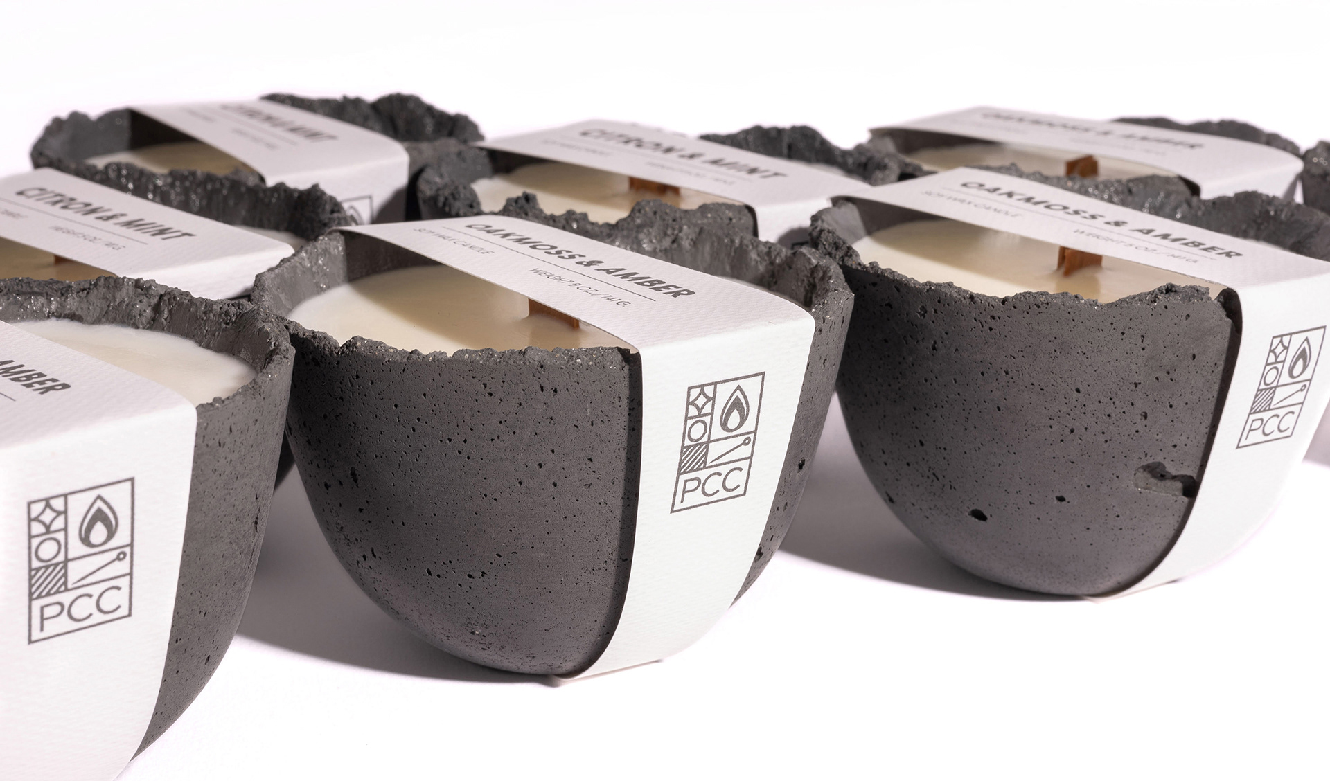 The Moon Rock candle is a line of handcrafted candles designed for Pacific Coast Crafts. We wanted a year-round collection that set itself apart from the signature and tulip candle collections, which are housed in smooth, hand-cast concrete containers. While still using concrete for the Moon Rock containers, we embraced the natural imperfections of the medium, such as air bubbles. Chipping away the lip of each container enhances its unique quality, creating an eye-catching, moon rock-inspired look and feel. We then paired this distinctive container design with high-end wax, premium fragrance oils, and a minimalist label featuring Pacific Coast Crafts’ brand font, Greycliff, to complete the product. Customer reception and overall sales of the Moon Rock collection have been strong, making it a staple in Pacific Coast Crafts’ lineup since 2023. Product Design Art Direction Label Design